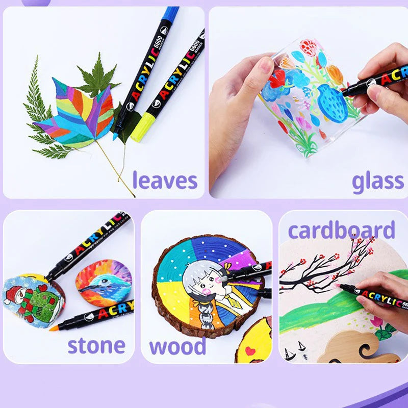 A tinta acrílica rica y pigmentada flui con uma consistência perfeita, proporcionando cobertura completa y colores vibrantes que trazem à tona o melhor do seu trabalho manual. O design de dupla ponta dessas Rotuladores permite a você alternar entre detalhes finos y preenchimentos audaciosos con facilidade, dando liberdade para a sua criatividade fluir sem limites.